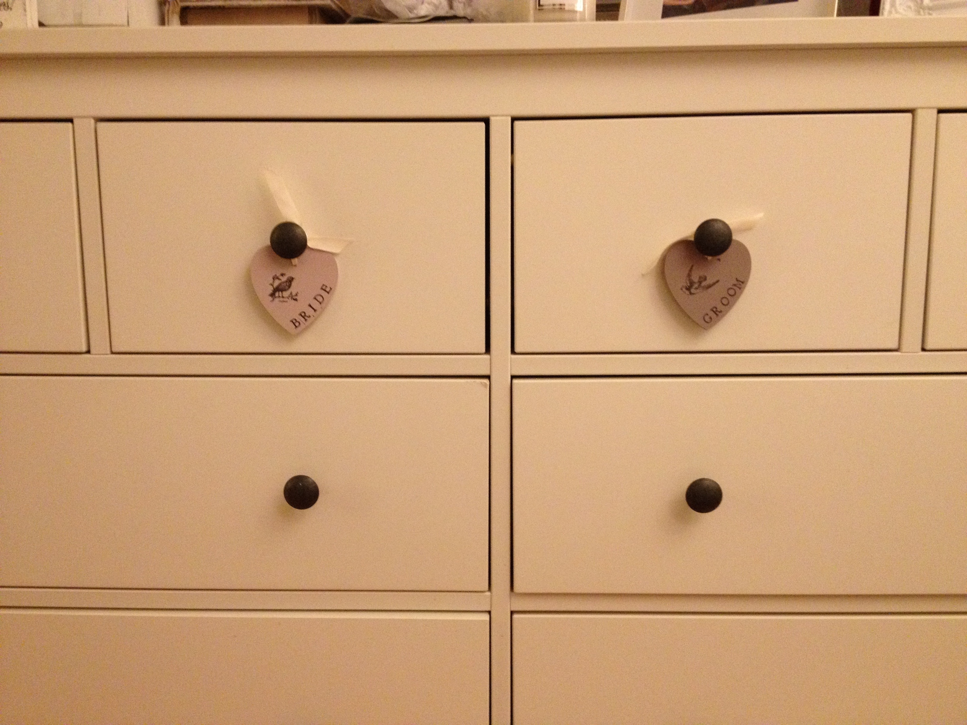 During the reception a few of the guys attached their favour to their jacket button holes which looked cool and was nice for me to see. And now, a couple of months on, it’s lovely to go round to my friends and families houses and see the favours hung and looking pretty. As for mine? They are hanging on my chest of drawers, where husband doesn’t need to worry about them getting in his way!